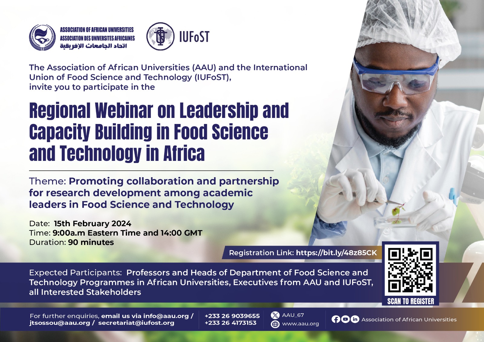The capacity-building webinar, organized by IUFoST and AAU, aims to: